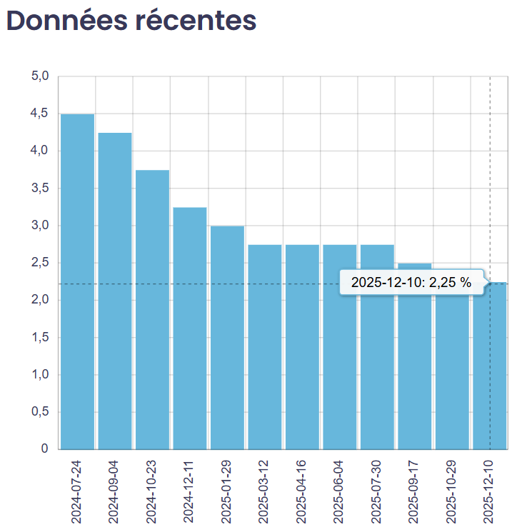 Ce matin, le 10 décembre 2025, la Banque du Canada a annoncé le maintien de son taux directeur à 2,25 %.